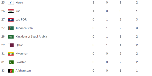 단일팀이 1개의 금메달과 1개의 동메달을 기록하며 코리아는 현 시점에서 전체 25위를 기록했다. 한국은 3위(금 25, 은 27, 동 34), 북한은 6위 (금 10, 은 5, 동 7)이다.