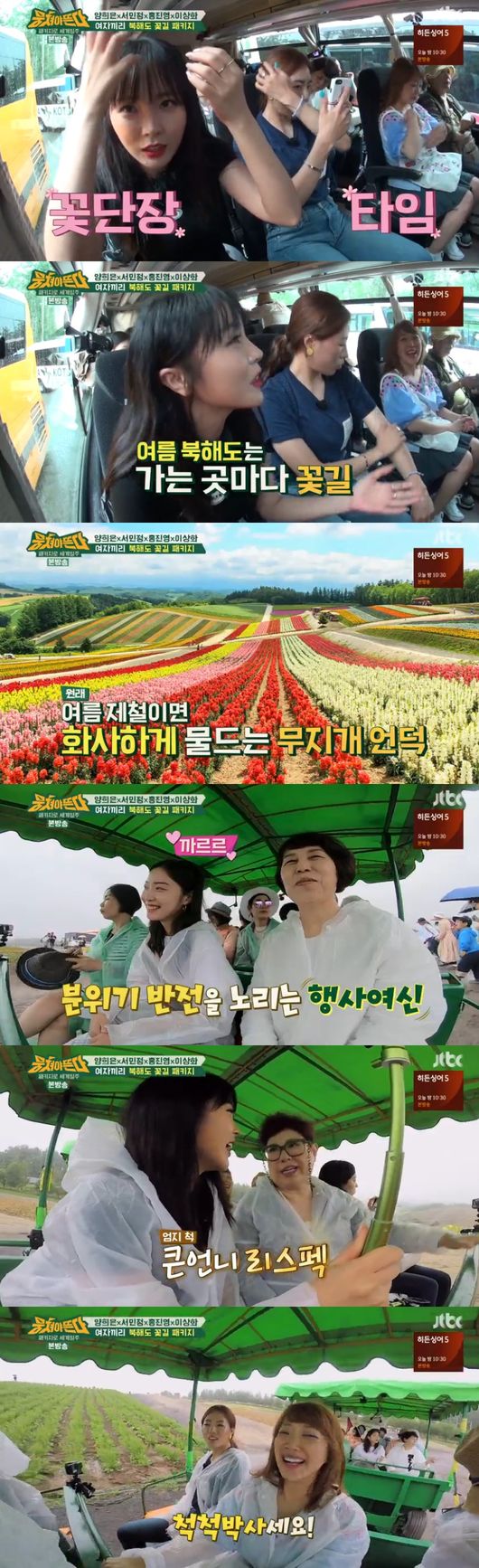 이날 양희은, 서민정, 홍진영, 이상화가 북해도 꽃길 패키지를 출발했다. 진영이 인생샷 사진을 보내주자, 민정은 "진영이랑 여행하니까 정말 좋다"며 기뻐했다. 진영은 "인생샷 많이 찍어드리겠다"며 기뻐했다.