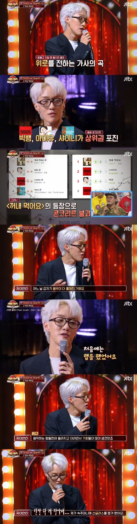 26일 방송된 JTBC 예능 '히든싱어 시즌5'에서 가요계의 절대 음원강자, 트렌디한 감성뮤지션 자이언티가 출연했다.