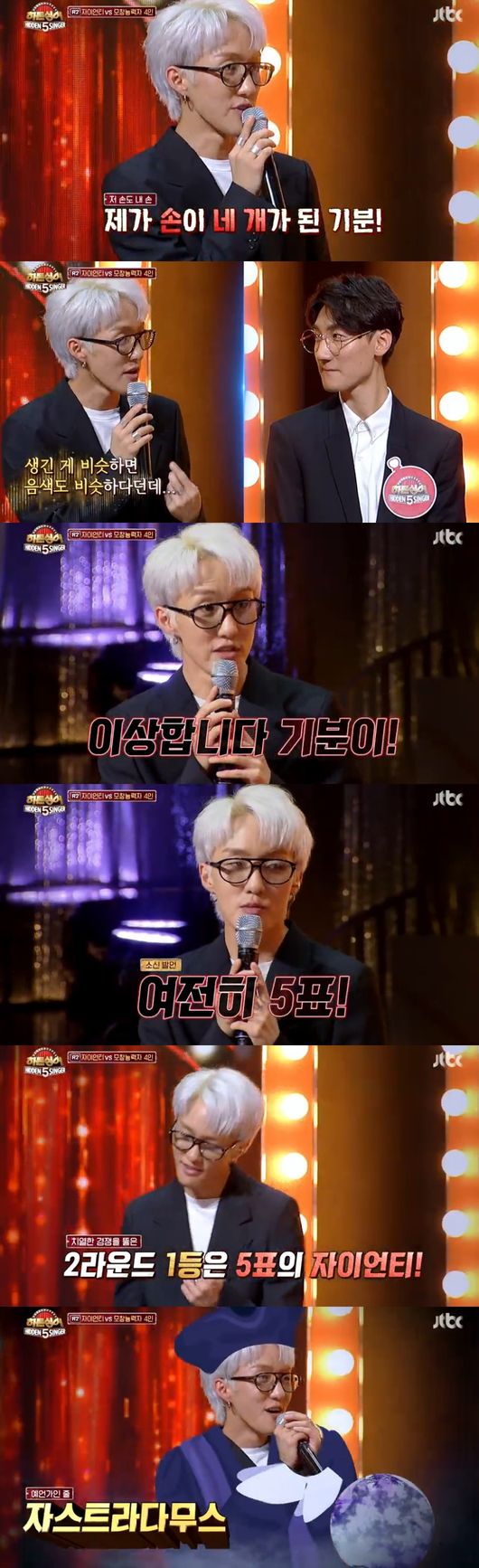 본격적으로 1라운드가 시작됐다. 긴장된 모습을 보인 자이언티는 "노래할 때 편하게 하려고 선글라스 챙겨왔다"고 했다. 갑자기 모습이 바껴도 당황하지 말라고 했다. 노래할 때는 변신하겠다며 히든스테이지로 이동했다.