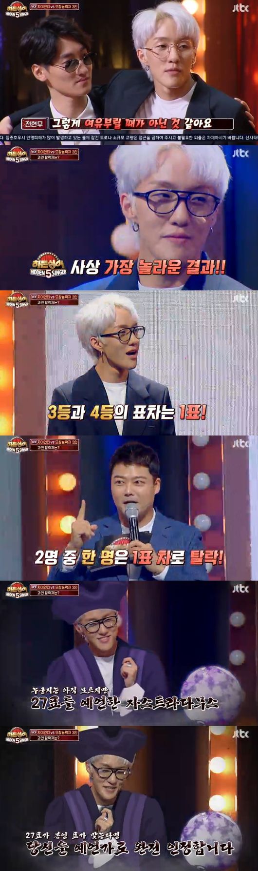전현무는 "두 명 중 한 명이 100표 중 27표, 다른 한명은 28표"라고 했다. 심지어 27표를 받을거라 자이언티가 예상했기에, 모두 "맞으면 예언가 자이언티가 예언가"라며 놀라워했다. 역대 표를 맞힌 출연자가 없었기에 전현무는 "생존해도 27표 예언한 것"이라 말했다.