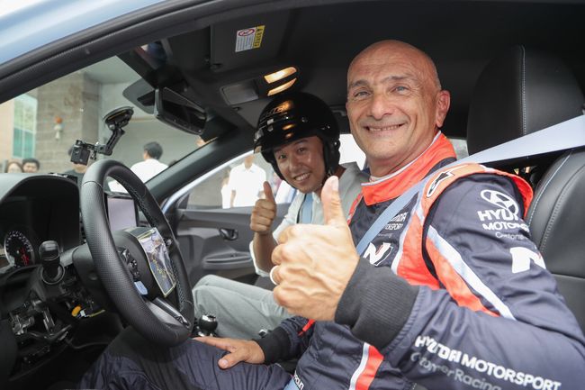 현대자동차(주)는 글로벌 투어링카 대회 'WTCR(World Touring Car Cup)'에서 활약하고 있는 세계적인 프로 드라이버 가브리엘 타퀴니(Gabriele Tarquini)의 내한에 맞춰 지난 23일 팬미팅을 열었다. 26일에는 타퀴니가 모는 레이싱카를 직접 타보는 택시 드라이빙 기회도 팬들에게 줬다.