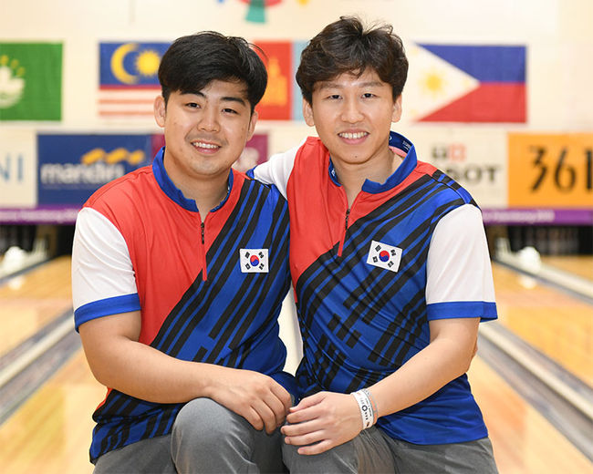 [사진] 위는 박종우(왼쪽)와 구성회, 아래는 이나영(왼쪽)과 이연지. /아시아볼링연맹