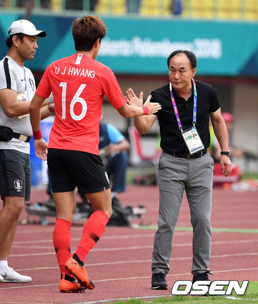 황의조는 이번 대회서 가공할 만한 득점력을 과시하고 있다. 한국의 5경기에 모두 출전해 무려 8골을 터트리며 득점 랭킹 선두를 질주했다. 특히 이란과 16강, 이날 우즈벡전서 연속골을 뽑아내며 와일드 카드 이상의 역할을 해냈다. 연장 후반 종료 직전엔 절묘한 개인기로 페널티킥까지 얻어내며 황희찬의 결승골을 도왔다.
