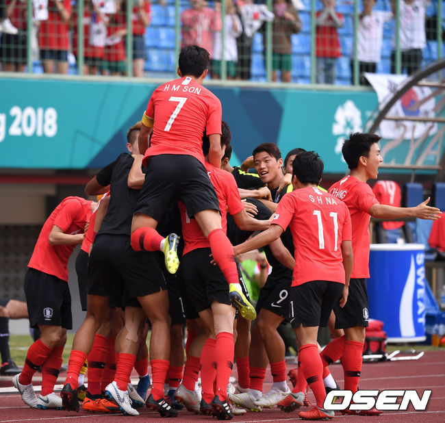 김학범 감독이 이끄는 2018 자카르타-팔렘방 아시안게임 남자 축구 대표팀은 27일(이하 한국시간) 인도네시아 버카시 패트리어트 찬드라바가 스타디움서 열린 우즈벡과 대회 8강전서 황의조의 해트트릭 원맨쇼와 연장 종료 직전 황희찬의 페널티킥 결승골에 힘입어 4-3으로 힘겹게 승리했다. 한국은 오는 29일 베트남-시리아전 승자와 4강전을 치른다.