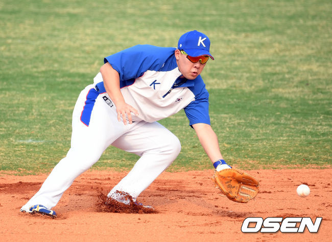 가장 눈에 띄는 선수는 안치홍이다. 전날(26일) 대만전에서 선발 2루수로 나서 2안타를 터뜨린 안치홍은 이날 박민우에게 2루 자리를 내주고 3루로 옮겼다. 프로 데뷔 후 대부분 시간을 2루수로 뛰었던 안치홍에게 3루수는 낯선 자리다.