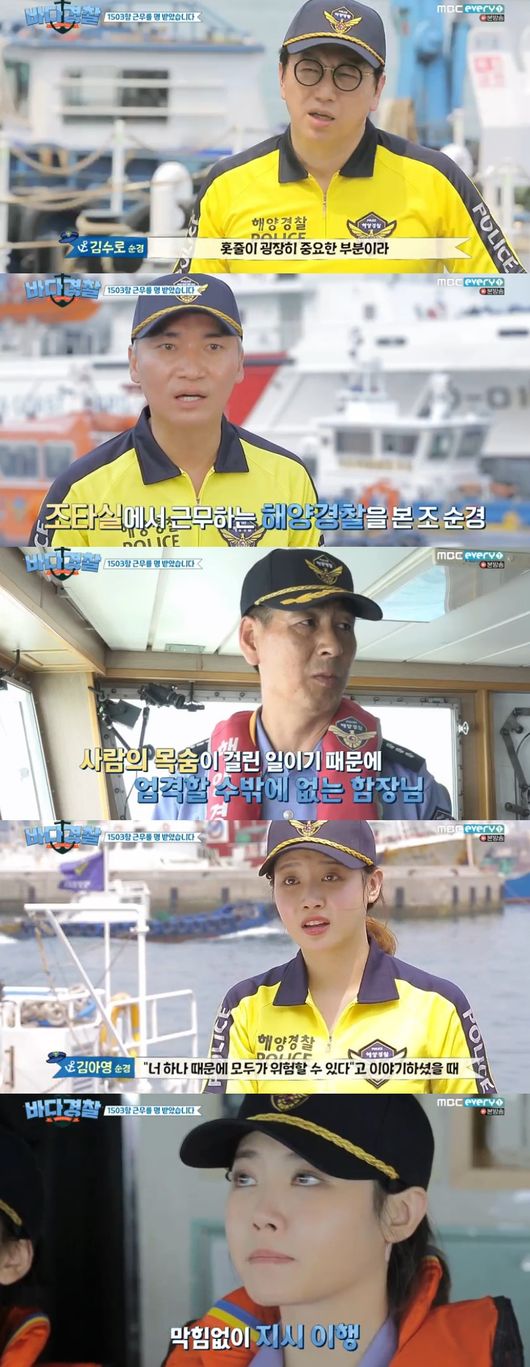 27일 방송된 MBC 에브리원 '바다경찰'에서 함정에서의 첫 훈련이 그려졌다.