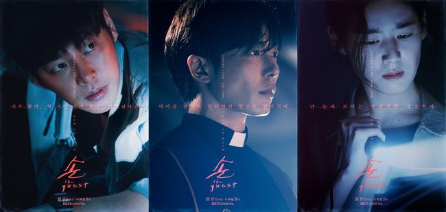 오는 9월 12일 첫 방송되는 OCN 수목 오리지널 ‘손 the guest’(연출 김홍선, 극본 권소라 서재원, 제작 스튜디오드래곤) 측은 28일, 시선을 압도하는 김동욱, 김재욱, 정은채의 캐릭터 포스터를 공개, 이제껏 본 적 없는 한국형 리얼 엑소시즘 드라마의 탄생을 기대케 했다.