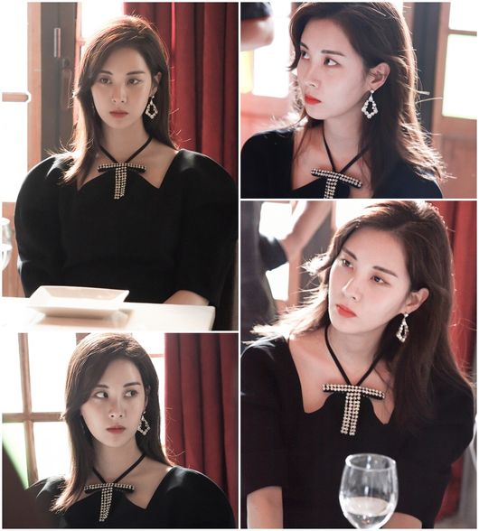 ‘시간’ 서현이 블랙 원피스에 붉은 립스틱을 한, 화려한 ‘흑화 변신’을 꾀한다.