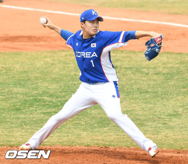 후속 리윙싱과 리우호잉을 삼진 처리하며 이닝을 끝낸 임찬규는 5회 마운드를 넘겼다. 4회까지 총 투구수 49개로 스트라이크 39개, 볼 10개. 한국이 5-2로 앞선 5회부터 두 번째 투수로 이용찬이 마운드에 올랐다. /waw@osen.co.kr