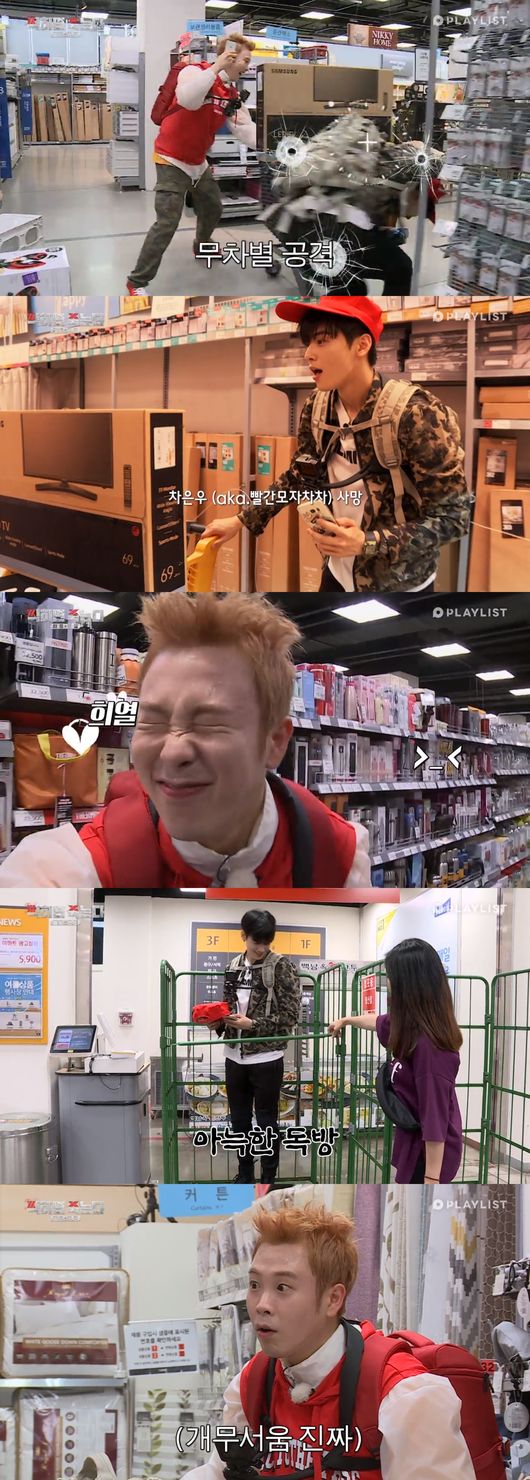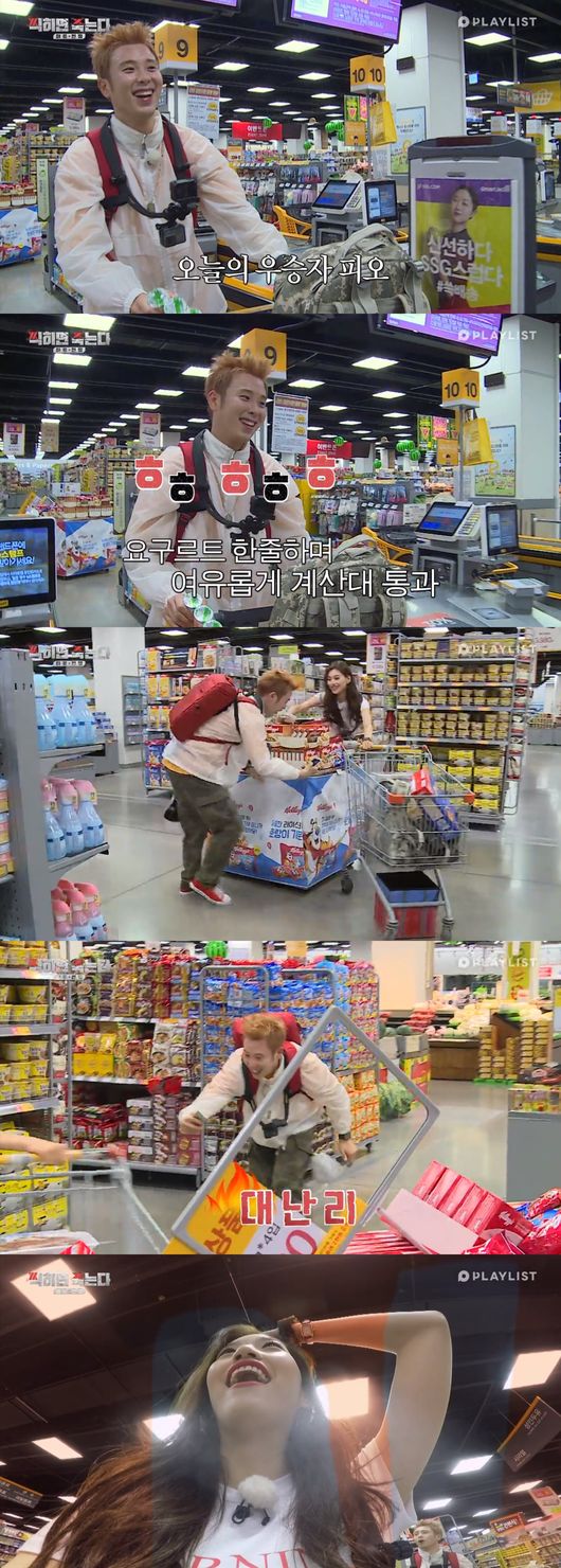 28일 네이버 V라이브를 통해 방송된 플레이리스트 '찍히면 죽는다-마트 전쟁(이하 찍히면 죽는다)에서는 차은우, 피오, 리지, 장도연, 김도연이 서로 찍히고 찍는 대결을 펼쳤다.