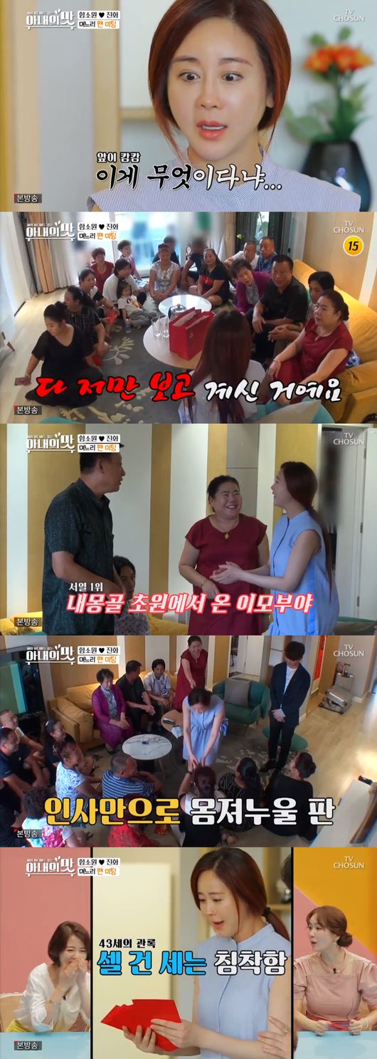 흑룡강부터 내몽골, 지난, 쯔보 등에서 왔고 친척들은 함소원에게 빨간 봉투를 전달했다. 이에 MC들과 패널들이 부러운 반응을 보냈다. /kangsj@osen.co.kr