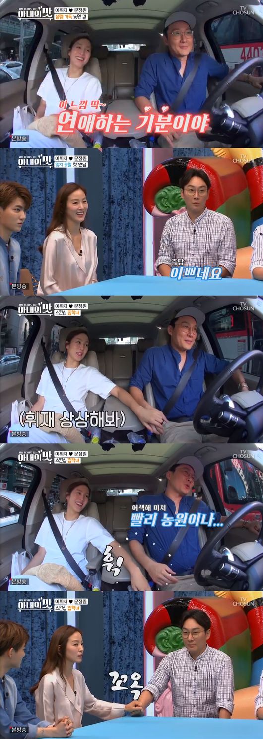 이날 방송에서는 이휘재는 아내가 일하는 농원에 함께 가는 모습이 공개됐다. 농원에 가는 길에 문정원은 이휘재를 향해 사랑스러운 눈빛을 보냈고 연애하는 것 같다며 설레 하는 모습을 보였다.