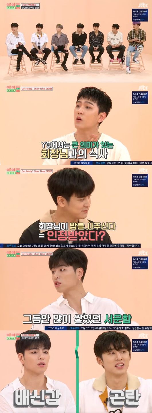 그런가 하면 아이콘은 데뷔 4년차 만에 양현석 대표와 겸상한 것을 이야기하며 기뻐하기도. 이들은 "밥을 넘어 술을 같이 먹었다. 회장님이 겸상을 안 하기로 유명하다. 밥을 사준다는 건 정말 인정을 받았다는 것이다"라면서도 "YG에서 어떤 아티스트들이 양현석 회장과 겸상을 했는가"라는 정형돈과 데프콘의 질문에 "다들 한 것 같다"고 답해 폭소를 유발했다.