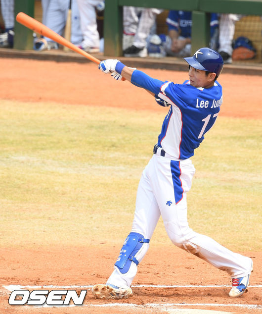 이정후는 대표팀의 리드오프로 맹활약 중이다. 그는 대만전 3타수 1안타(2루타) 1볼넷으로 멀티출루를 기록했다. 그는 인도네시아전에서도 2타수 2안타 1볼넷 2득점 2타점의 대활약을 펼쳤다. 12타수 7안타 2볼넷 6타점 5득점의 이정후는 대회 타율이 5할8푼3리에 이른다. 기라성같은 형들을 모두 제치고 막내가 1등이다. 홈런은 3개의 황재균에 이어 팀내 2등이다.