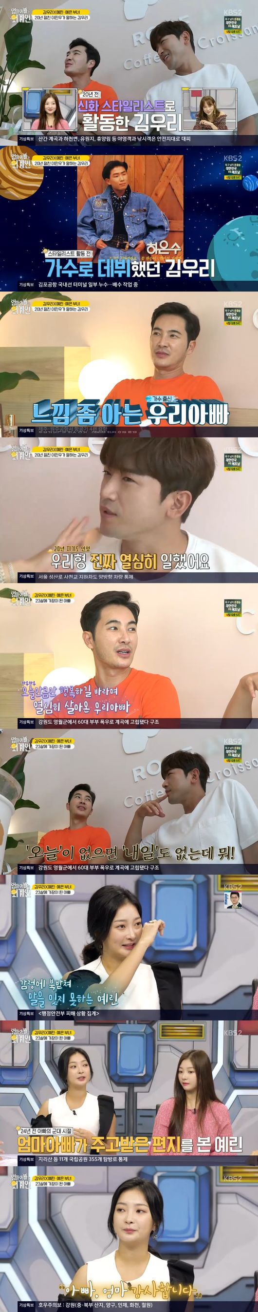 예린은 "23살에 가장이 된 아빠, 군대에서 엄마랑 주고 받은 걱정 가득한 편지를 읽었다"면서 "어린 나이에 겪게 된 막막함을, 예린이를위해 더 열심히 살자고 써있었다"면서 부모님 마음을 이제 알기에 감사함을 전했다. 무엇보다 철부지 아빠로만 보였던 김우리의 남다른 가족사랑이 시청자들을 뭉클하게 했다. /ssu0818@osen.co.kr