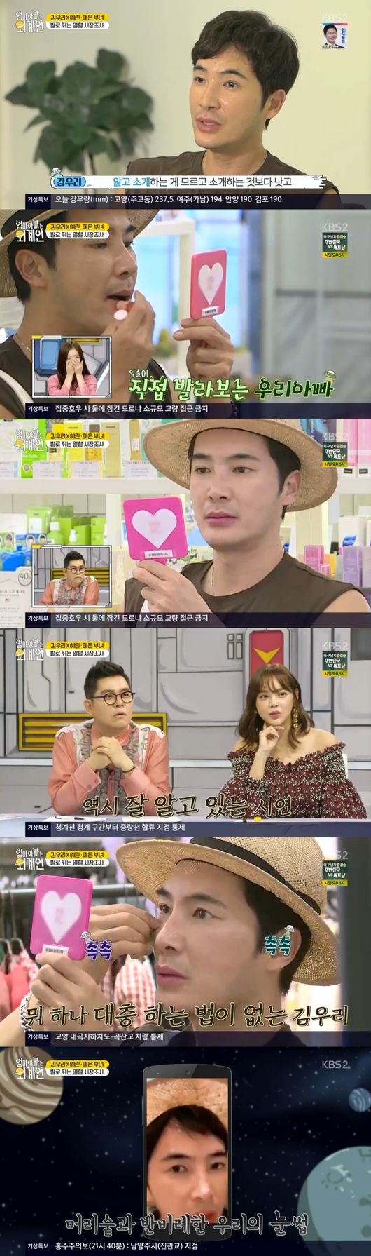 먼저 장소시간 불문하고 김우리는 길거리 라이브 방송을 시작했다. 22년차 스타일리스트답게 의상 편집숍을 찾았다. 이어 계절이 바뀔때 세일 기간이 찾아온다며 저렴하게 좋은 옷을 구할 수 있는 노하우를 전했다. 옷을 흔들어 옷 소재부터 꼼꼼하게 따졌다.