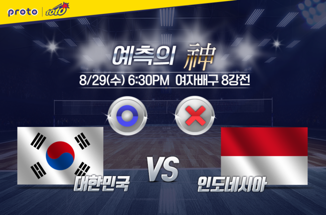 29일(수)에 열리는 아시안게임 여자배구 8강 대한민국-인도네시아전 대상 ‘예측의 신’ 이벤트 진행