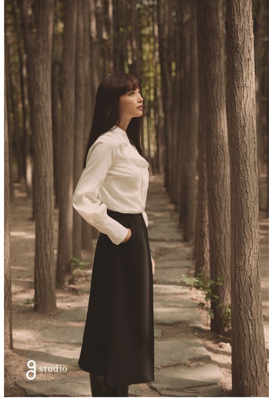 과하지 않은 러플 장식이 돋보이는 고급스러운 컬러감의 블라우스로 여성스러운 매력을 발산하고, 세련된 디자인의 니트 스커트를 착용해 멋스런 분위기를 연출하기도 했다. 특히 가을 시즌 머스트 해브 아이템인 트렌치코트를 착용해 올 가을 스타일링을 제안하고 있다.
