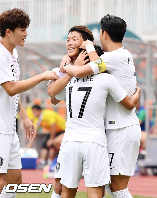김학범 감독이 이끄는 아시안게임 남자 축구대표팀은 29일(이하 한국시간) 오후 인도네시아 보고르 파칸사리 스타디움서 열린 2018 자카르타-팔렘방 아시안게임 남자 축구 준결승전서 박항서 감독이 지휘하는 베트남을 3-1로 완파했다. 이승우의 2골과 황의조의 1골을 더해 완승을 매조졌다.