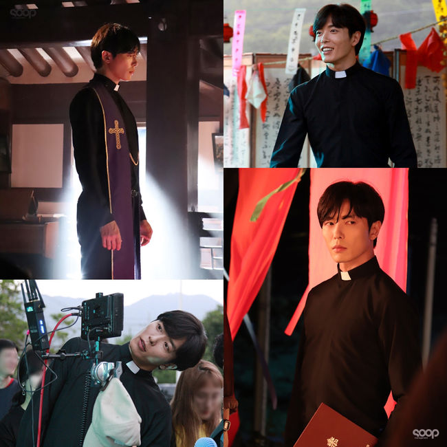 공개 된 사진은 ‘손 the guest’의 포스터, 티저 촬영현장 속 김재욱의 무한 매력발산이 포착 돼 눈길을 끈다. 무더운 날씨가 연일 이어지던 지난 7월 강화도에서 진행 된 이번 현장에서 그는 지친 기색 하나 없이 얼굴에는 즐거운 미소가 가득했다. 여기에 검은 사제복을 입어 다크한 매력을 드러냈고, 내추럴한 헤어스타일까지 완벽하게 소화해낸 모습은 보는 것만으로도 설레게 만든다.
