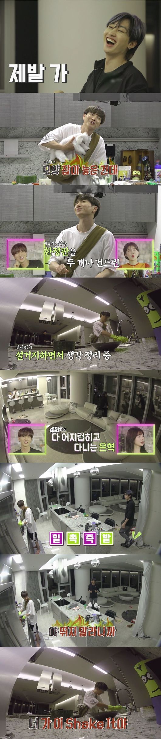은혁은 어슬렁 어슬렁 다니면서 깔끔한 이특의 하우스를 난장판으로 만들었다. 스튜디오에서는 "이특 씨한테 감정이입을 하게 됐나보다" "은혁 씨가 돌아다니면서 만지고 하니까 불안하다" "청소하는 걸 지켜봐서인지 신경이 쓰인다" "저거 하나 닦으려고 그렇게 솔질을 했는데" "다 정리해놓은 건데 어떡하냐" "점점 표정이 안 좋아진다" "이쯤되면 일부러 저러나 싶은 생각도 든다" 등의 반응을 보이며 모두 불안해하는 모습을 보였다.