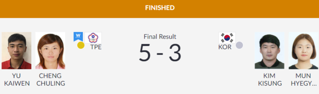 대만의 위 카이원-청추링 조는 4강과 결승에서 한국을 연이어 격파하며 금메달을 목에 걸었다. 한국은 앞서 2002년 부산 아시안게임에서 혼합복식이 도입된 이후 4연속 우승을 차지한 바 있다.
