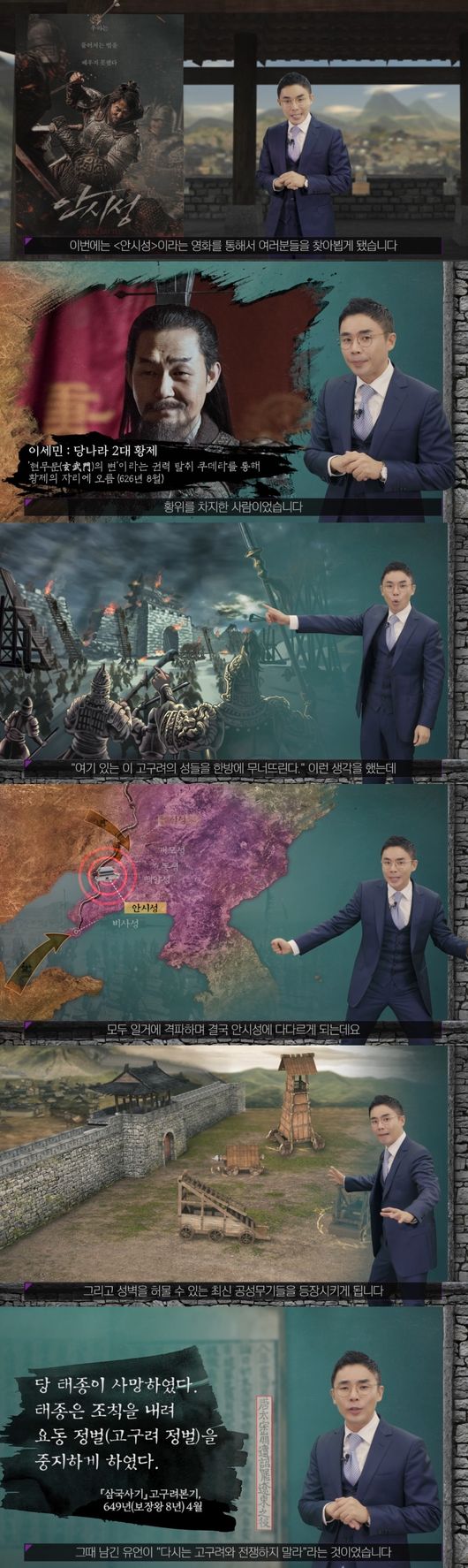 이번에 공개된 설민석 강사의 ‘안시성 특강 영상’은 안시성 전투의 시발이 되는 당시 고구려 시대 상황부터 당나라의 상황, 그리고 88일간의 전투 동안 안시성 성민들이 승리를 거둘 수 있었던 이유에 대해 분석 했다. 설민석 강사는 영상을 통해 당시 고구려 시대 상황이 위로는 당나라, 아래로는 신라에게 압박을 받고 있었던 점, 안시성주 양만춘과 대막리지 연개소문의 사이가 특히 좋지 않았던 점 등 영화를 보기 전 알면 좋은 알찬 배경 지식을 전달할 예정이다.