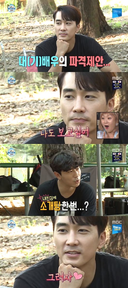 이런 박나래의 마음을 이시언이 대신 전했다. 이시언은 "나래가 형을 엄청 보고 싶어한다"고 박나래의 마음을 전달했고, 송승헌은 "나도 보고 싶다. 팬이다"라고 화답했다. 이시언은 송승헌의 대답에 조심스럽게 "소개팅은"이라고 물었고, 송승헌은 쿨하게 "그러자"고 답했다. 소개팅까지도 하겠다는 송승헌의 말에 박나래는 환호했고, 전현무는 마시고 있던 음료수를 뿜었다. 전현무는 "저분도 진짜 진정성 없다"고 영혼 없는 대답을 한 송승헌을 비난해 웃음을 자아냈다.