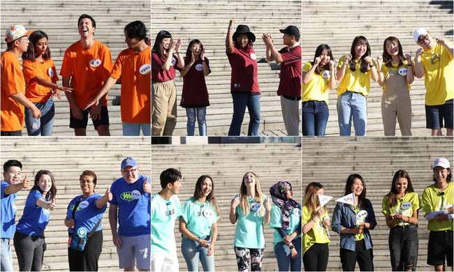 이와 함께 ‘1박 2일’ 멤버들은 글로벌 팬 3명과 한 팀을 이뤄 눈길을 끌었다. 이에 맏형 김준호는 ‘얼간이들’ 팀, 차태현은 ‘차차차 자매’ 팀, 데프콘은 ‘아시아 엔절’ 팀, 김종민은 ‘콩깍지’ 팀, 윤시윤은 ‘흥폭발 미녀’ 팀, 정준영은 ‘미녀 3총사’ 팀 등 각 팀의 개성을 살린 팀명으로 기선제압에 나섰다. 더불어 노랑, 파랑, 주황 등 팀복을 맞춰 입고 하나가 된 단합력을 자랑하며 시작부터 팽팽한 기싸움을 펼쳤다는 후문. 여기에 ‘척하면 척’ 환상의 쿵짝 케미로 스태프들까지 배꼽 쥐게 만들었다고 해 시청자들의 호기심을 자극하고 있다