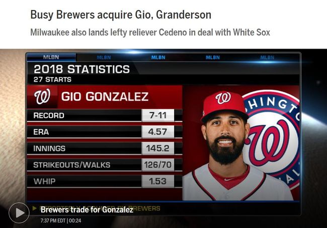 MLB.com은 1일(이하 한국시간) "포스트시즌에 출장할 수 있는 트레이드 마감을 앞두고 밀워키가 투수 지오 곤잘레스, 외야수 커티스 그랜더슨, 왼손 불펜 자비에 세데뇨를 영입했다"고 전했다.