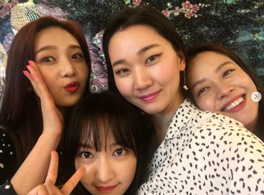 조이와 성소는 언니들의 품에 안겨 귀여운 표정을 짓고 있어 풋풋한 매력을 선사한다. 이들은 나란히 어깨동무를 하고 인증샷을 찍는 등 화기애애한 분위기를 보이고 있어 눈길을 끈다.
