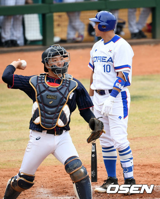 선두타자 손아섭이 느린 커브에 헛스윙 삼진으로 물러난 뒤 황재균이 타석에 섯다. 황재균은 이번 대회 홈런 4개를 때릴 정도로 타격감이 좋았다. 그러나 2볼-2스트라이크에서 바깥쪽 빠진 공을 지켜봤다. 심판이 그대로 삼진 선언을 했다. 반대 타석에 가까운 공이었지만, 심판은 냉정하게 삼진 콜을 외쳤다.