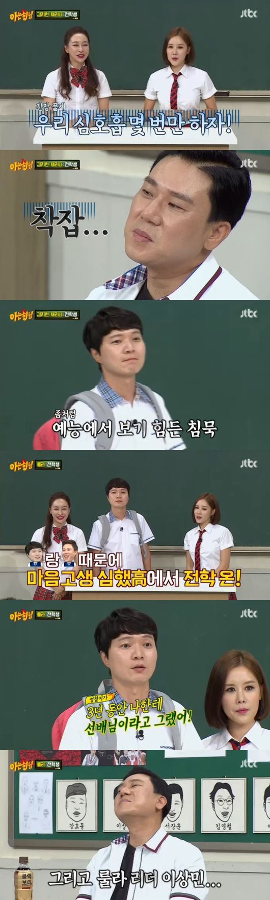 이날 MC들은 전학생을 소환했다. 이상민은 누군지 이미 아는 듯 "들어오지마라"고 했다. 채리나와 김지현이 등장했다. MC들은 "연예인 보는 느낌, 매주 출연한 느낌 단골 토크 출연했다. 과도한 폭로 속상하지 않냐"고 했다. 두 사람은 "우리가 희생해서 빚 갚으면 그걸로 된다"면서 "그래도 없는 말 아니다"고 말했다. 이어 "우리가 너덜너덜 해지더라도, 상민이가 좋으면 괜찮다"며 의리를 보였다.