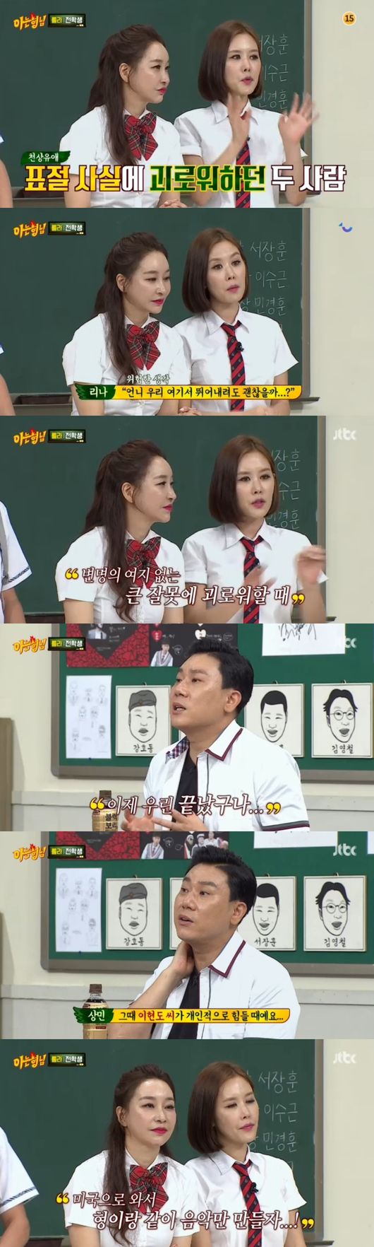 이날 MC들은 전학생을 소환했다. 이상민은 누군지 이미 아는 듯 "들어오지마라"고 했다. 채리나와 김지현이 등장했다. MC들은 "연예인 보는 느낌, 매주 출연한 느낌 단골 토크 출연했다. 과도한 폭로 속상하지 않냐"고 했다. 두 사람은 "우리가 희생해서 빚 갚으면 그걸로 된다"면서 "그래도 없는 말 아니다"고 말했다.이어 "우리가 너덜너덜 해지더라도, 상민이가 좋으면 괜찮다"며 의리를 보였다.