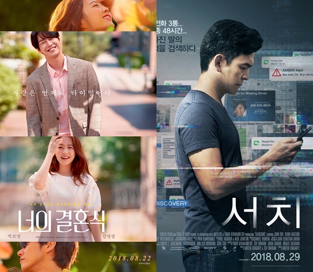 영화 ‘너의 결혼식’(감독 이석근)이 개봉 후 줄곧 1위를 차지하고 있는 가운데, ‘서치’(감독 아니쉬 차간키)가 관객들의 입소문을 타고 박스오피스를 정주행하고 있다.