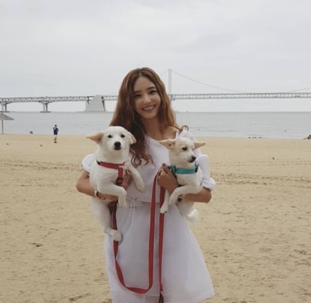 함께 공개된 사진을 보면 한채영은 자신의 반려견 두 마리와 함께 부산 광안리 바닷가에서 산책을 즐기고 있다. 만면에 행복한 미소를 짓고 있는 한채영의 모습이 보는 이들까지 덩달아 웃게 만든다.