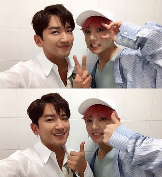 그룹 신화의 이민우가 방탄소년단 정국과의 투샷을 공개하며 방탄소년단을 응원했다.