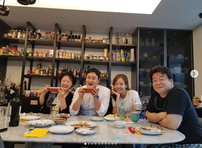 사진 속에서 심진화와 김원효는 소유진, 백종원과 함께 식사하는 모습이다. 심진화, 김원효 부부는 백종원이 해준 음식을 먹고 행복해하는 표정이다.