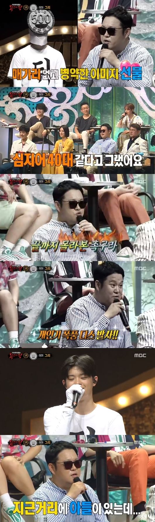 '복면가왕' 김구라가 아들 MC그리의 목소리도 알아채지 못하는 모습으로 모두를 폭소케 했다. MC그리는 랩이 아닌 노래로 대중 앞에 서서 의외의 매력을 선보이는데 성공했다.
