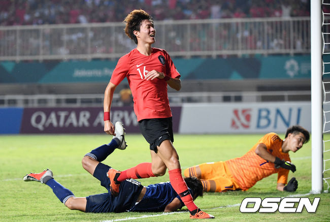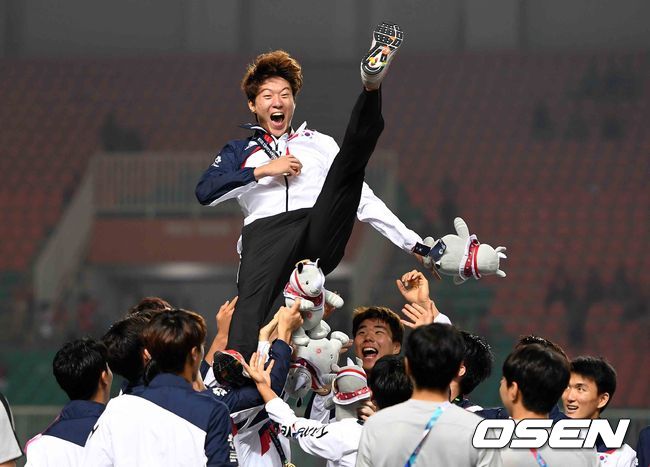 김학범 감독이 이끄는 아시안게임 남자 축구대표팀은 지난 1일(한국시간) 밤 인도네시아 보고르 파칸사리 스타디움서 열린 2018 자카르타-팔렘방 아시안게임 남자 축구 결승전서 일본과 연장 혈투 끝에 2-1로 승리했다. 연장 전반 3분 이승우(헬라스 베로나)의 천금 선제골과 연장 전반 11분 황희찬(함부르크)의 결승골을 더해 금메달을 확정지었다.