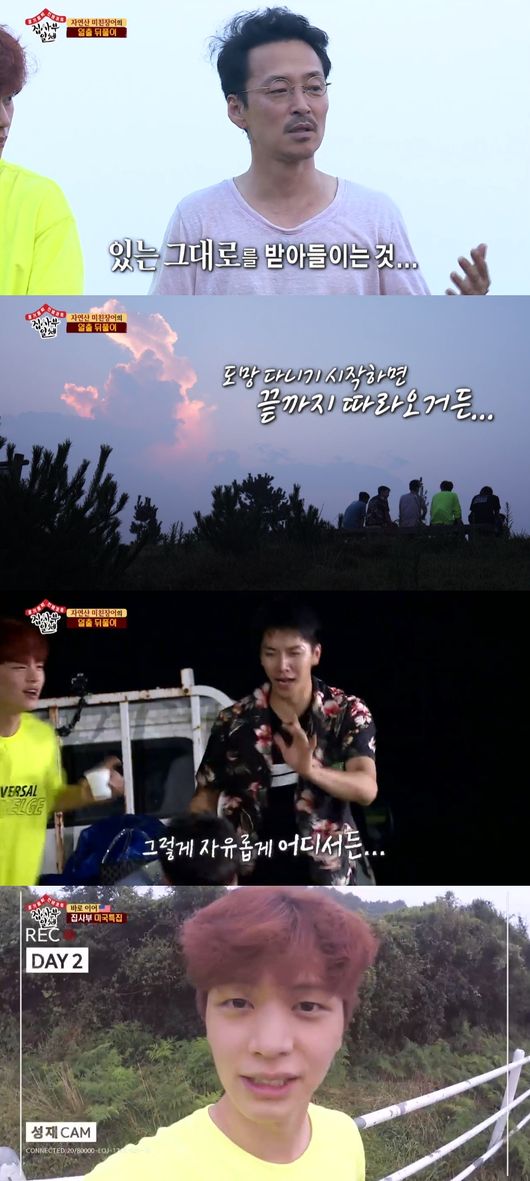 지난 2일 오 후 방송된 SBS '집사부일체'에서는 강산에 사부와 제주도에서 밤샘을 하는 멤버들의 모습이 그려졌다. 강산에와 멤버들은 계곡 밤 수영, 야식 먹기, 일드클럽에서 놀기, 오름에 오르기 까지 알차게 시간을 보냈다.