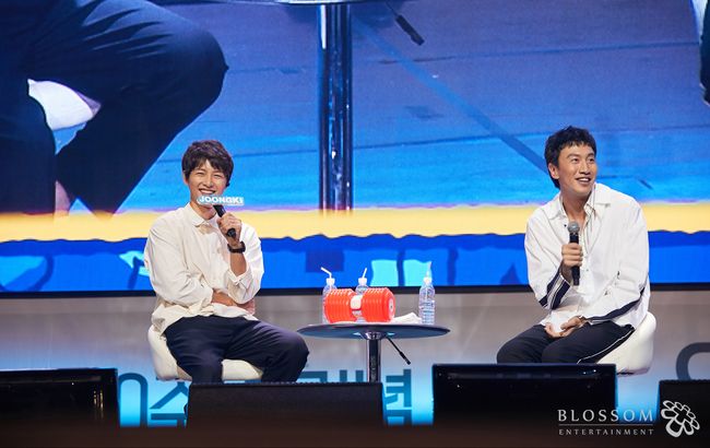 여기에 평소 절친한 배우인 이광수가 특별 손님으로 등장, 준비된 VR게임을 함께 즐기며 티격태격 브로맨스 케미를 선보였다. 뿐만 아니라 2PM 준호, 배우 김민석은 블라인드 토크를 통해 송중기의 일상을 폭로(?), 장내에 유쾌함을 더했다는 후문.