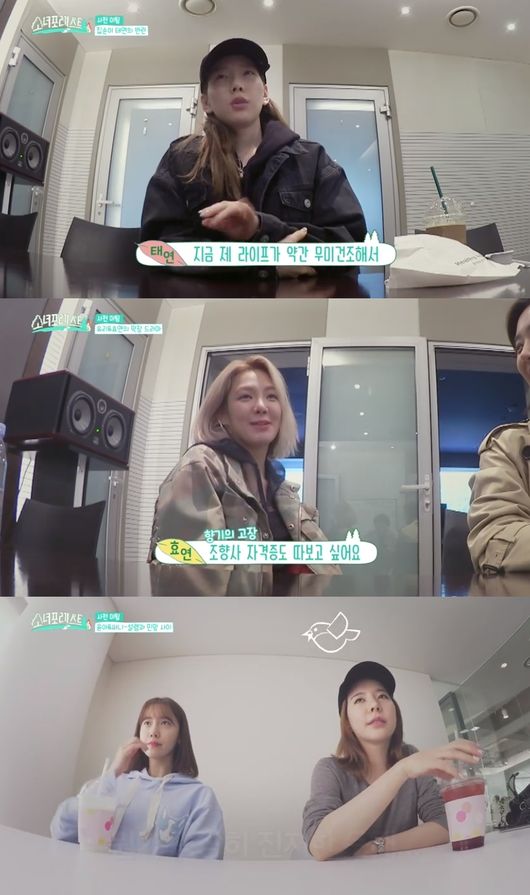 집순이 태연은 여행을 앞두고 베이킹 실력을 뽐내고 싶다는 마음을 드러냈다. 또 팀을 이루고 싶은 멤버를 묻는 질문에 "나는 혼자 잘 있어서"라고 말한 뒤 "윤아가 민박집 보니까 이것저것 손을 댈 줄 알더라"며 윤아와 함께 여행하고 싶다고 밝혔다.