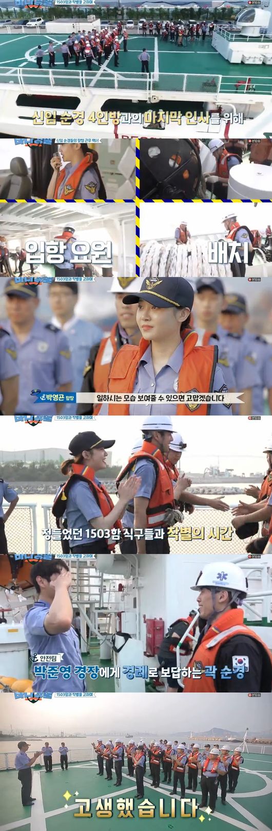 다함께 입항을 준비했다. 무사히 입항했고, 마지막 인사를 위해 모두 한 자리에 모였다. 네 사람은 모든게 맘처럼 쉽지 않았던 하루였던지 만감이 교차한 듯 보였다. 정들었던 1503호 순경들과 아쉬운 작별인사를 나눴다. 하나부터 열까지 기존에 익혔던 훈련보다 한충 더 심화된 훈련앞에서망설이 없이 임무를 수행한 신임 순경 4인방이었다. 각자에게 주어진 역할을 달랐지만 모두가 맡은 자리에서 최선을 다했기에 한 뼘 더 성장할 수 있었던 시간이었다.