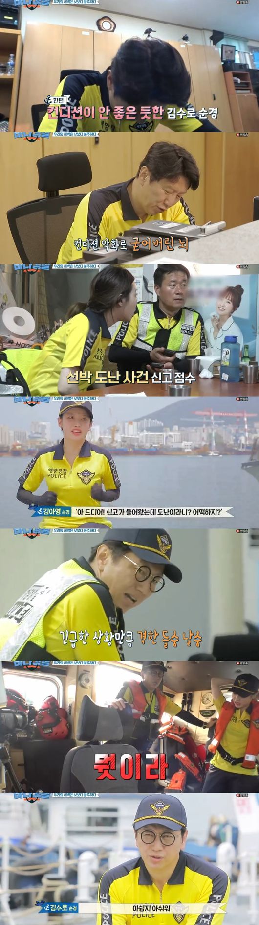 급히 현장에 출동한 두 사람은 첫 신고라 긴장한 모습이 역력했다. 필요한 서류를 챙겨 출항했으나, 관할 지역에 벗어나 다ㅏ시 복귀해야했다. 밥도 못 먹고 달려왔건만 뒤늦게 상황파악한 김수로는 "다행이지만 아쉽다"고 했다. 이때, 베테랑 해양 경찰이 "아침부터 조짐이 안 좋다"면서 심상치 않은 촉을 감지했다.