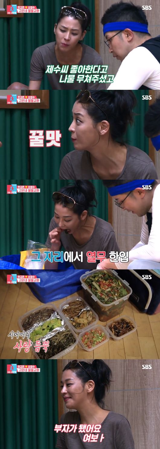 김치부터 나물까지 한고은이 좋아하는 반찬으로 가득했다. 신영수는 “내가 좋아하는 거 하나도 없다”고 했다. 시어머니는 한고은을 위한 반찬을 만들어준 것. 신영우는 “어머니가 어젯밤부터 반찬을 했을 거다. 결혼하고 나서 부모님이 좋아하더라. 아들끼리 있을 때는 여행을 간다 치더라도 무미건조했는데 화기애애해졌다”고 했다.
