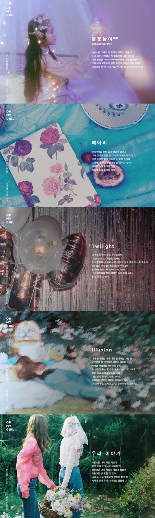 4일 오마이걸 소속사 WM엔터테인먼트는 공식 SNS채널을 통해 오마이걸의 미니 6집 앨범 ‘Remember me’의 가사 티저 이미지 5장을 공개하며 컴백에 대한 기대감을 높였다.