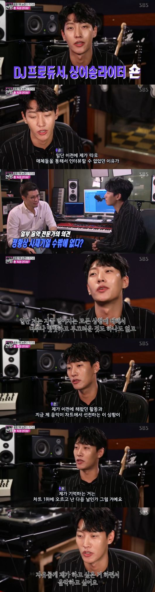 음원 사재기 정황에 대해 숀은 "불신을 저한테 조장하는 분 많았다, 정말 가까운 사람도 그랬다"면서 "하지만 떳떳하고 부끄러움없다, 사재기 1등 아니다"고 말했다. 논란이유에 대해서는 "지금까지 활동과 차트가 연결고리가 없고, 너무 갑자그럽게 차트에 등장했고 생소한 아티스트로 등장했기 때문"이라 말했다.