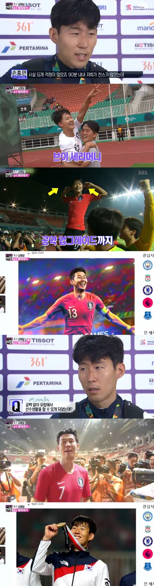 2018 아시안게임 빛나는 활약으로 금메달을 차지한 축구대표팀들 소식을 전했다. 황금빛 전사가 된 태극전사들을 많은 팬들도 반겼다. 손흥민은 "대한민국 유니폼을 입고 우승할 수 있어 기쁘고 감사하다"고 말했다.